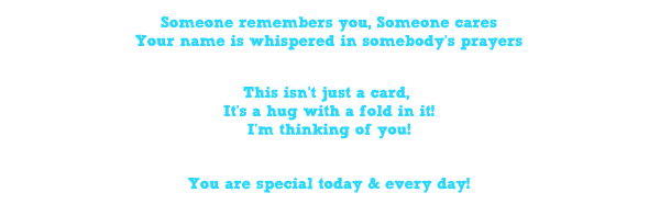 It would be nice to include a handmade card in each kit, don’t you think? Create a child-friendly handmade card and send it to me at the address listed at the end of this post. Send one, send ten! Any additional cards that don’t go into the kits will go directly to the Newtown Youth & Family Services center to be distributed. I imagine that children might like to choose a favorite card after their visit to the center. The center could also keep the cards for children who visit them in the future for other services. For themes on the cards, uplifting or all occassion sentiments might be the most appropriate (e.g. Thinking of you, You’re Special). We can’t be sure who these will reach. For the inside of the card, you can either leave it blank or sign it with your name and where you are from. Here are a few greeting card verses that may also be appropriate for the inside of your cards: