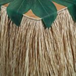 Let’s make the roof! Cut down a piece of foam-core board and add lengths of raffia skirt to the board until it is all covered.