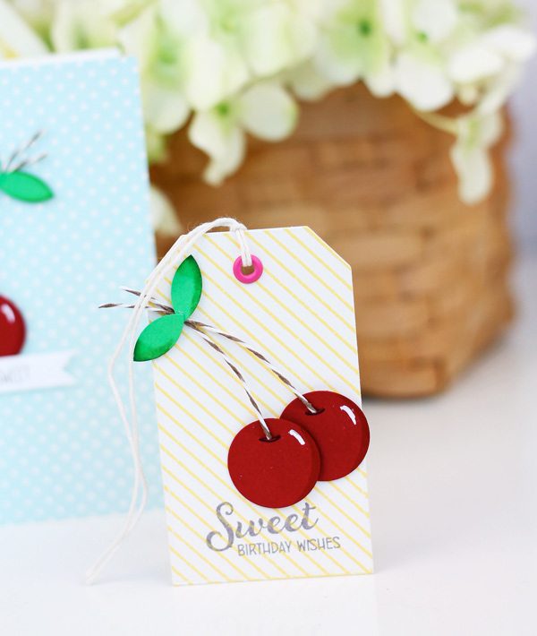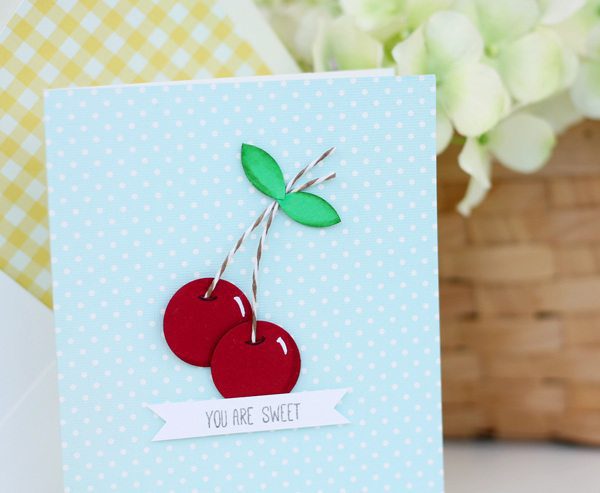 By stiffening the twine, your cherry stems come to life and are easier to adhere to the final project, like a card or a tag.