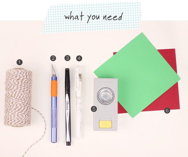 Can you believe that you can make these with just baker’s twine and a circle punch!? To make the baker’s twine a bit sturdier, you may want to utilize a simple technique that I frequently use for projects like this one where the twine needs to “stand” on it’s own.