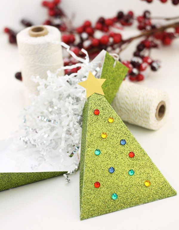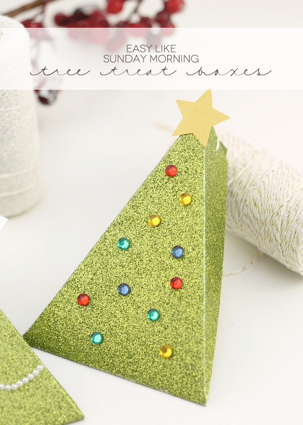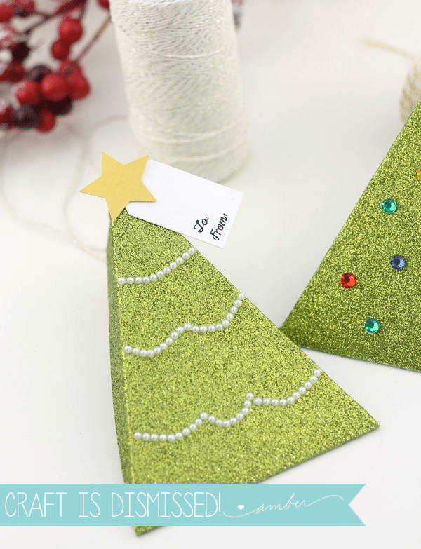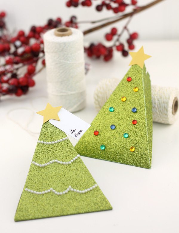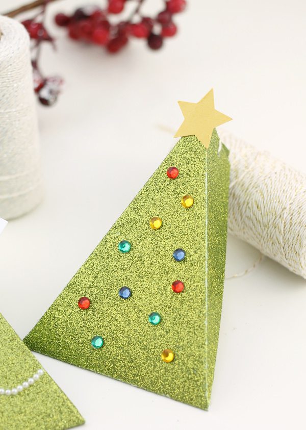 You can decorate the tree boxes in anyway you want – I went with pearl and gem adhesives which is quick and easy.