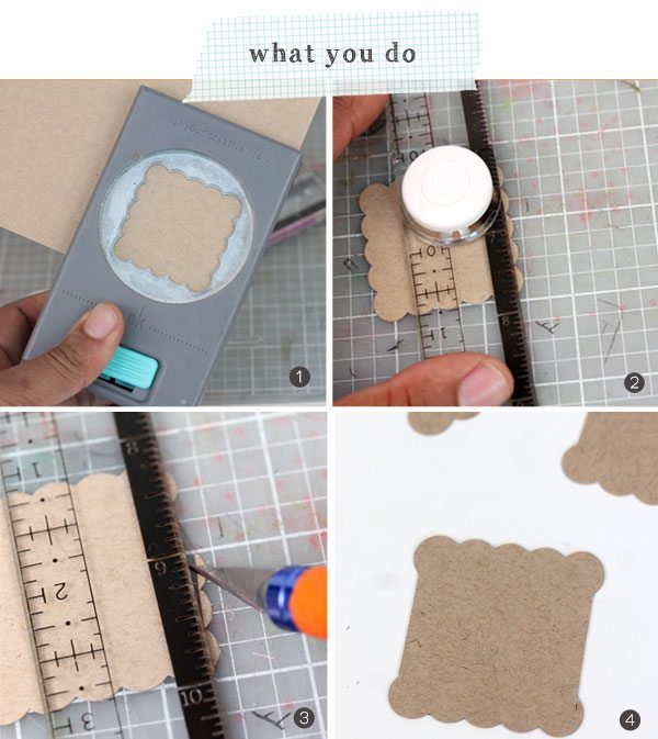 {1} Punch scalloped square from kraft cardstock
