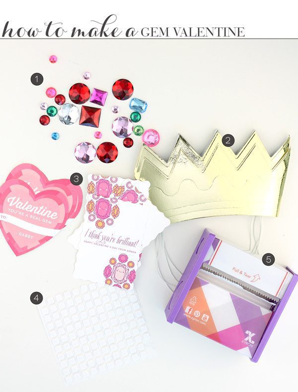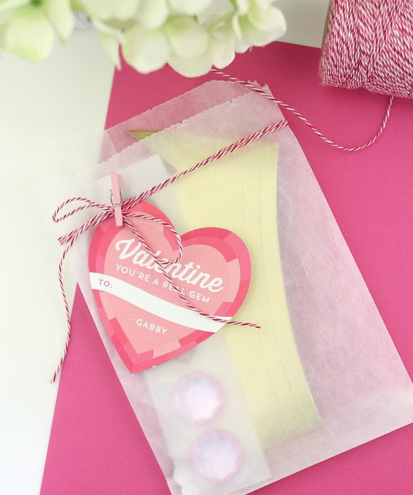 Valentine’s day is only two weeks away so we should probably use a few gemstones to celebrate. When I spotted these and these at Minted, I was immediately inspired to create a simple and adorable classroom valentine that you could whip up in minutes. You just need the right supplies: