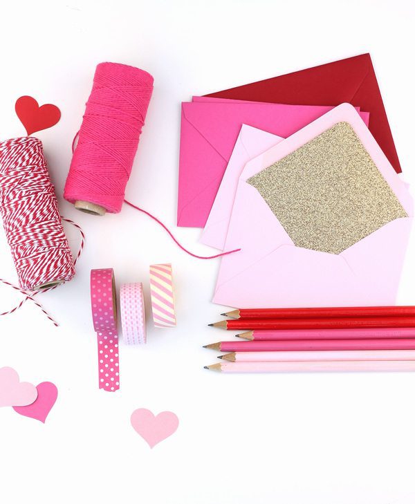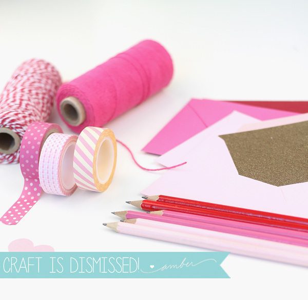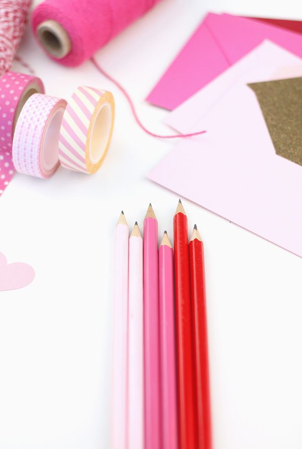 These pencils are the perfect addition to a simple valentine’s themed stationery set filled with pink and red paper supplies and packaging items.