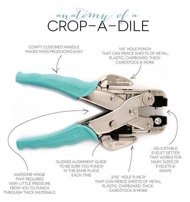 You can stitch em, you can glue em, or you can just staple them. Well today we’re adding eyelets to the party using one of my very favorite tools, the Crop-A-Dile. Now there is a good chance you have no clue what I’m talking about. Here’s the rundown.