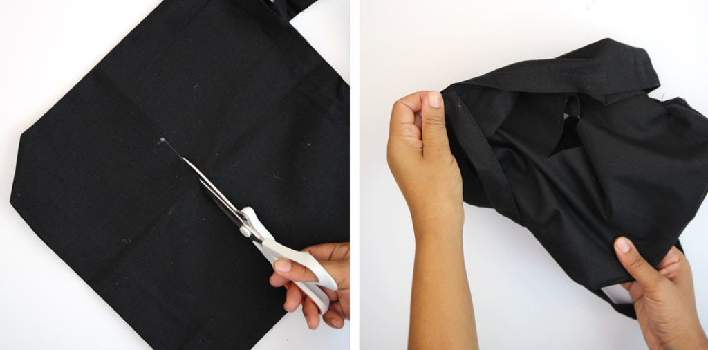 - You’ll have mirror image eyeballs once you’re done cutting. Place the eyes on your tote and iron them onto the bag according to the package instructions