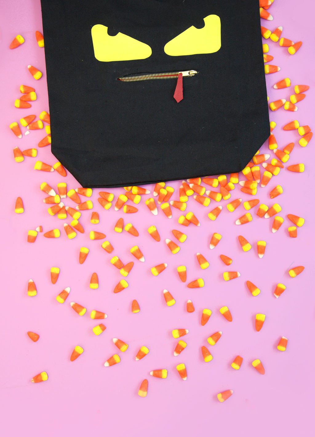 For the rest of us, thankfully we can join the band of monster tote fashionistas with a DIY version of this tote that is perfectly perfect for Halloween. Fill it up with your trick-or-treating treasures or tote it around as your everyday purse. Either way, all eyes will be on you. Let’s get started.