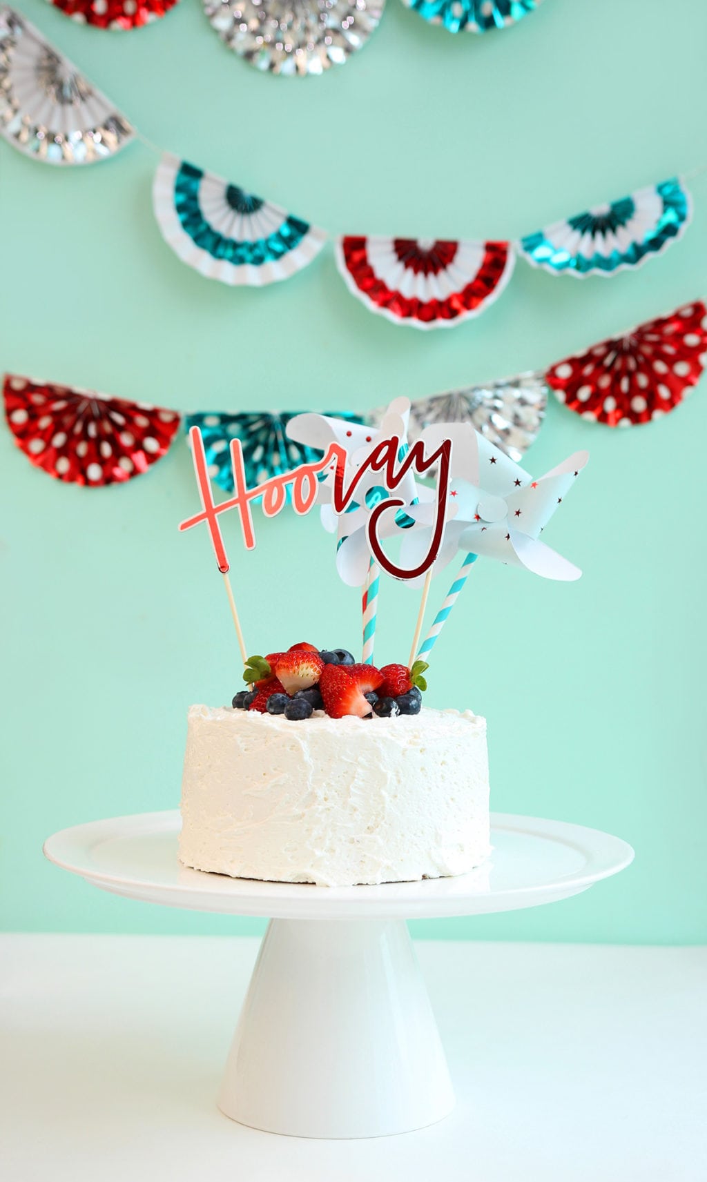 For the cake, I used the Minc Cake Toppers set to dress up a store bought cake (shh, don’t tell) that I also garnished with a few fresh berries. Fresh berries make everything look homemade.