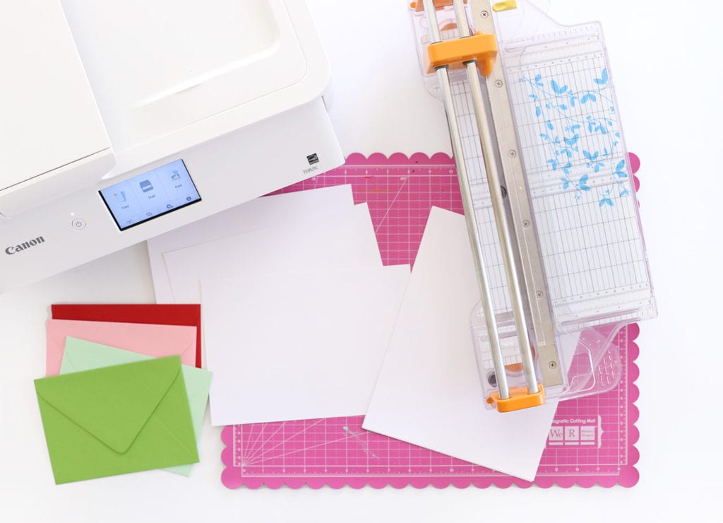 - White cardstock cut to 7×10″ – I love using the Canon Matte Photo paper for this