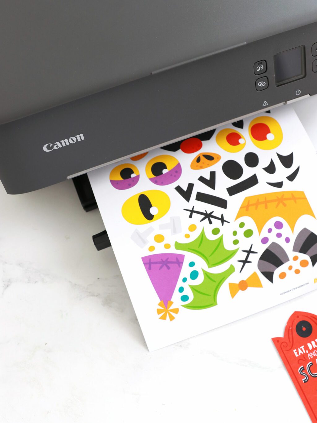 The TS6420 has rear tray that is great for loading specialty papers like printable sticker paper. That’s exactly what I did with the printable monster face stickers.