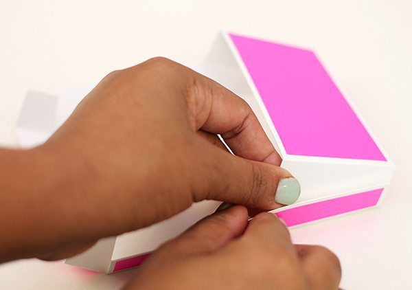 You’ll want to tuck and glue down all of the flaps to make sure the notecards fit securing inside. I started with the larger top flap….