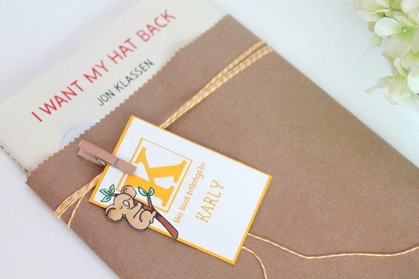 When you’ve created your bookplate, it also makes for an adorable tag. For this particular gift, I wrapped the book in kraft paper, then trimmed off the top with pinking shears. This gave it a cute “paper bag” look.