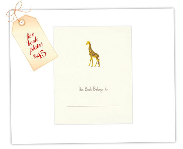 Bookplates. Also known as “don’t-steal-my-book-bookplates”…or maybe “yes-you-can-borrow-this-book-but-no-you-can’t-have-it-bookplates.” Whatever you wanna call ’em, we all know the purpose. Snazzy ways to personalize a book so that it doesn’t get lost or maybe just a nice way to give a gift. I especially love bookplates for children’s books, but I am a firm believer that these sort of children’s stationery items should be child-friendly. Cute. Not $45 for a set of five.