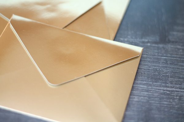 When it comes to high-society stationery and when it comes to envelopes, I’m pretty sure that the gold envelope from the Oscars is the most famous of them all. So today I’m doing a little something different. I’m taking on this metallic beauty. Nothing is safe when it comes to high-society stationery, people. Nothing is sacred. Except the Bible or something. I’m not gonna to dish any snark about expensive religious paper goods. Pretty sure that gets you a lifetime of lightening strikes and a non-stop flight to the fiery down under. I’ve never been one for extreme temperatures.