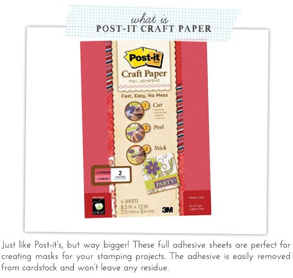 {2} Create die cut from Post-it Craft Paper and cover your stamped design. I find that it’s easier to stamp then mask the image. If you choose to mask the area then stamp, I found that it’s difficult to get the image perfectly lined up within the negative space.