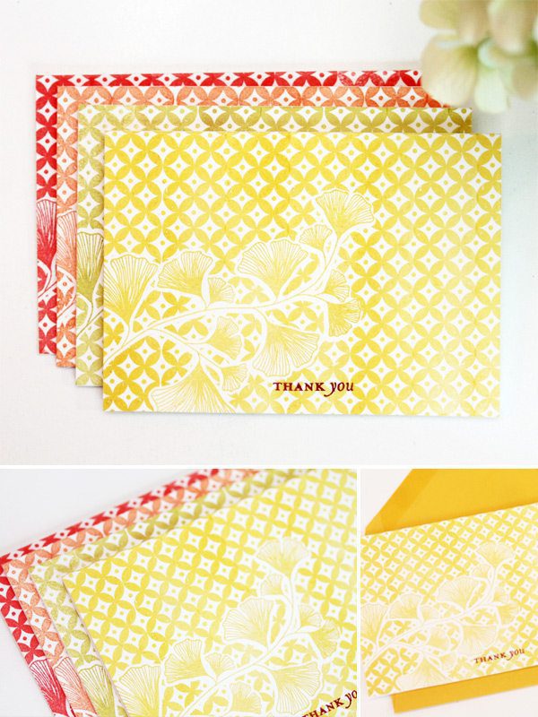 For my version of this cards, I went with the “spirit” of the design rather than an attempt at mimicking the exact same pattern. On the original card, I love how there appears to be one pattern embedding within another – and I love the use of one color throughout. With that in mind, I created my own notecards.