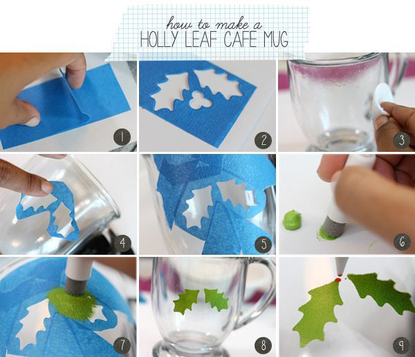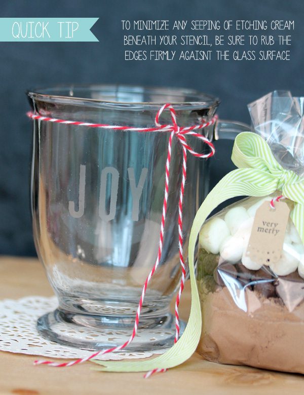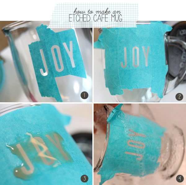 Using the glass paints and etching cream, I created a duo of adorable cafe mugs that are perfect for holiday gift giving. Let’s do this.