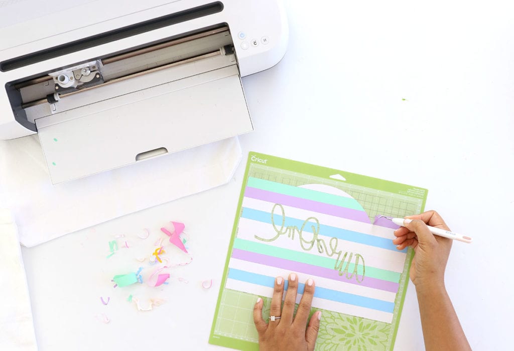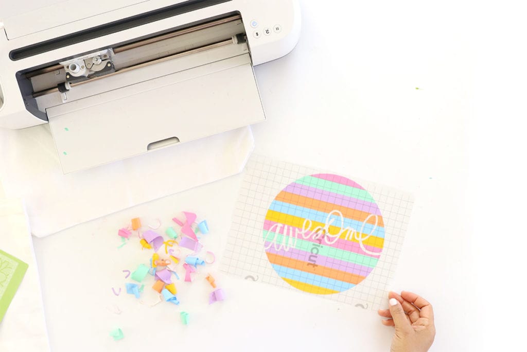 Now you can cut out a design using your Cricut Maker or Cricut Explore just as you would if this were a full sheet of iron on material. Next you’ll need to weed.