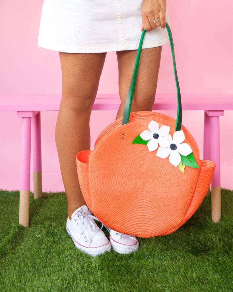 I love a clever DIY. A project that uses unsuspecting materials to make something awesome. Well, it doesn’t get more clever than this project if I do say so myself! Using a few woven placemats, you can create your very own designer inspired circle tote bag that will have heads turning and all your friends asking where you got it! I love how this turned out and you will too!
