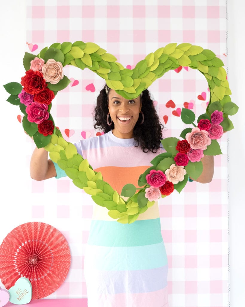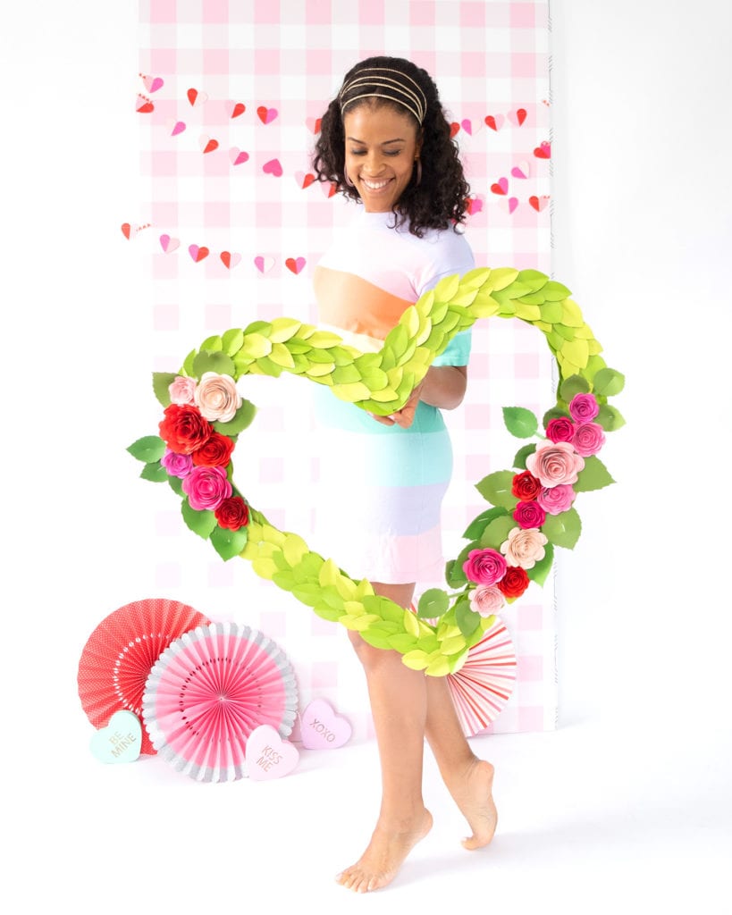 You can make this giant valentine’s day wreath as large as you want! It’s the perfect photo backdrop for a party or even a wedding!