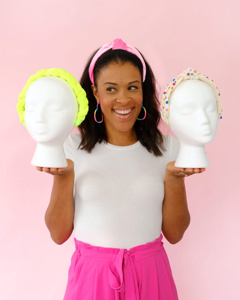 Once you learn how to make a headband, girlfriend – you’re never going to stop. These are so easy to make and look exactly like the pricey designer headbands I’ve seen for upwards of $150! The best part of this project is that any fabric will work! I love using a stretchy velvet but you can use any fabric you want. This means you can use up those fabric scraps you’ve been saving….yeah…I know you’ve got a pile of fabric scraps! Watch along as I show you exactly how these are made.