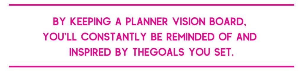 My first tip for vision boarding is to use you planner as the home of your board. Your planner is always within reach and you can reference your vision board whenever you want. By keeping a planner vision board, you’ll constantly be reminded and inspired by the goals you set.