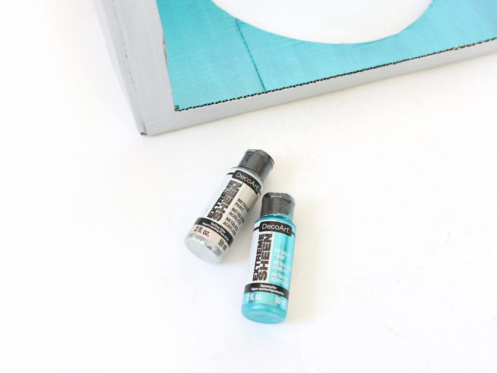 Use metallic paints to add color to your aquarium. I painted the inside with teal paint and the outside with silver.