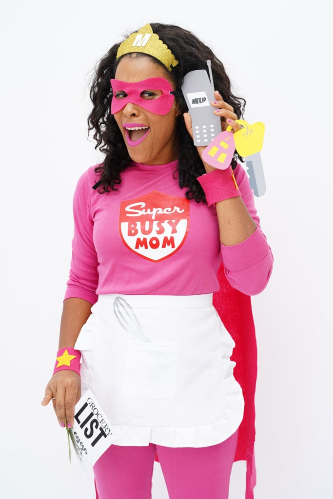 For the Super Busy Mom costume, I added a simple white apron since I’m the chef in the family!