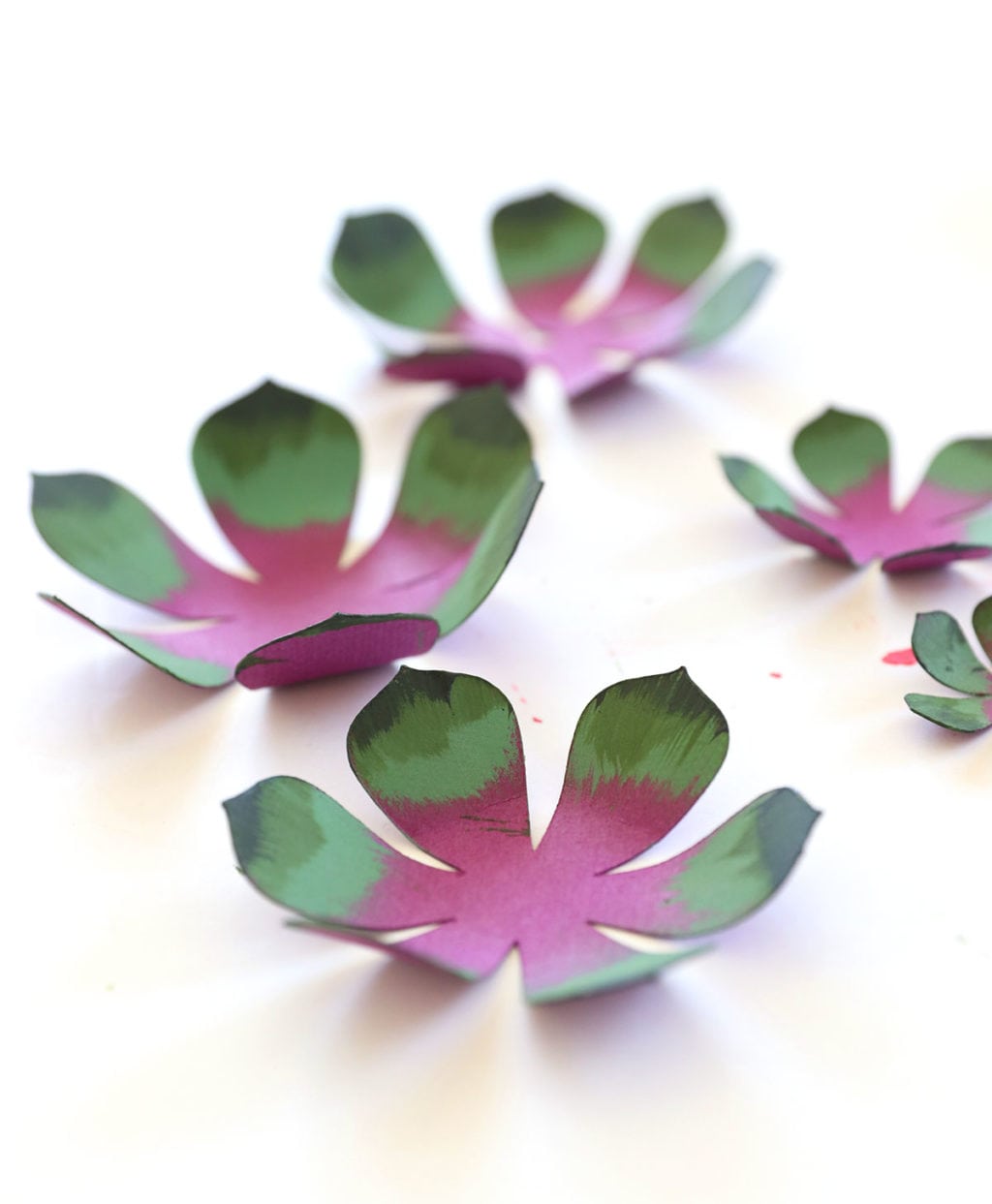 Paper flower and paper succulents are probably at the top of my list of favorite craft projects. But there’s one problem, I have no interest in snuggling up to a pair of scissors to cut out all the leaves and petals and such. No thanks. If I’m going to make paper flowers, I HAS to be easy and it has to be doable…like these!