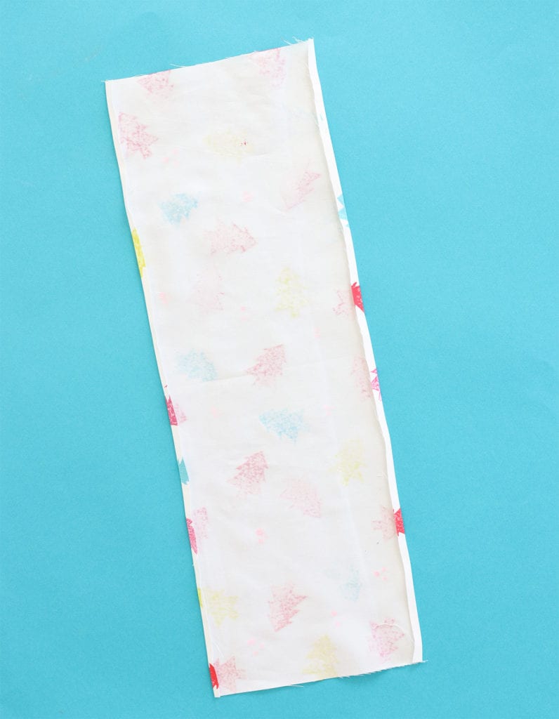 Use stamps and DecoArt Fabric Paint to stamp your design onto a piece of fabric measuring 7″ x 20″. After that, you’ll want to allow it to dry completely.