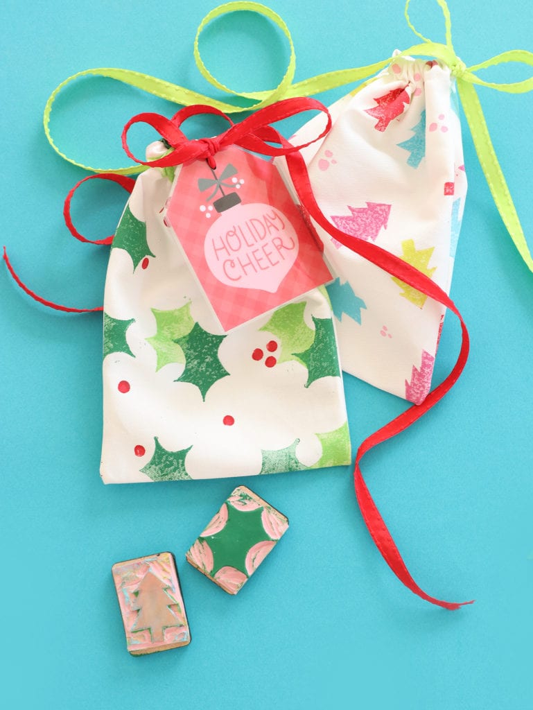 Once you have your created your DIY fabrics, you’ll want to transform them into something beautiful. A handmade drawstring bag is the perfect option for reusable gift wrap. For instance, you can use it to gift treats or jewelry and the recipient can keep it as a keepsake for years to come!