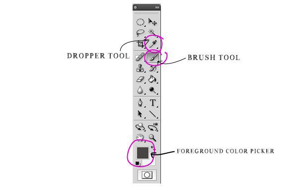 {3} Click on the Foreground Color Picker on the tools palette to bring up the selection window. With the window open, hover over your photo. This will bring up the dropper tool. Use the dropper tool to select one of the lighter shades in the background in your photo. By simply clicking on it, the dropper tool will “suck up” the color you chose and apply that as the foreground color. By doing this, you have now chosen the color that your paintbrush will apply when used.