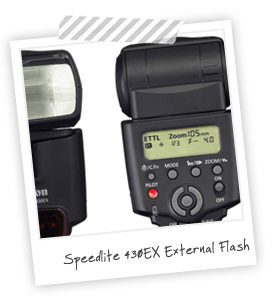 Of course, the Canon T3 comes with it’s own on board flash, but I quickly learned that the harshness of that flash is somewhat unappealing in the photos I take. I opted for an external flash, specifically the Canon Speedlite 430EX. Instead of directly additional light straight onto the subject, the swivel head makes it super easy to bounce light off an adjacent white surface (e.g a wall or a piece of white foam board). I still don’t know how to use the full capabilities of this flash, but I love what I’m able to do with it when taking photos at night.