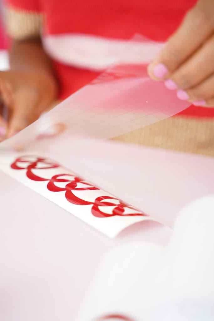 Peel back the transfer tape and you’ll see that your design is stuck to it!