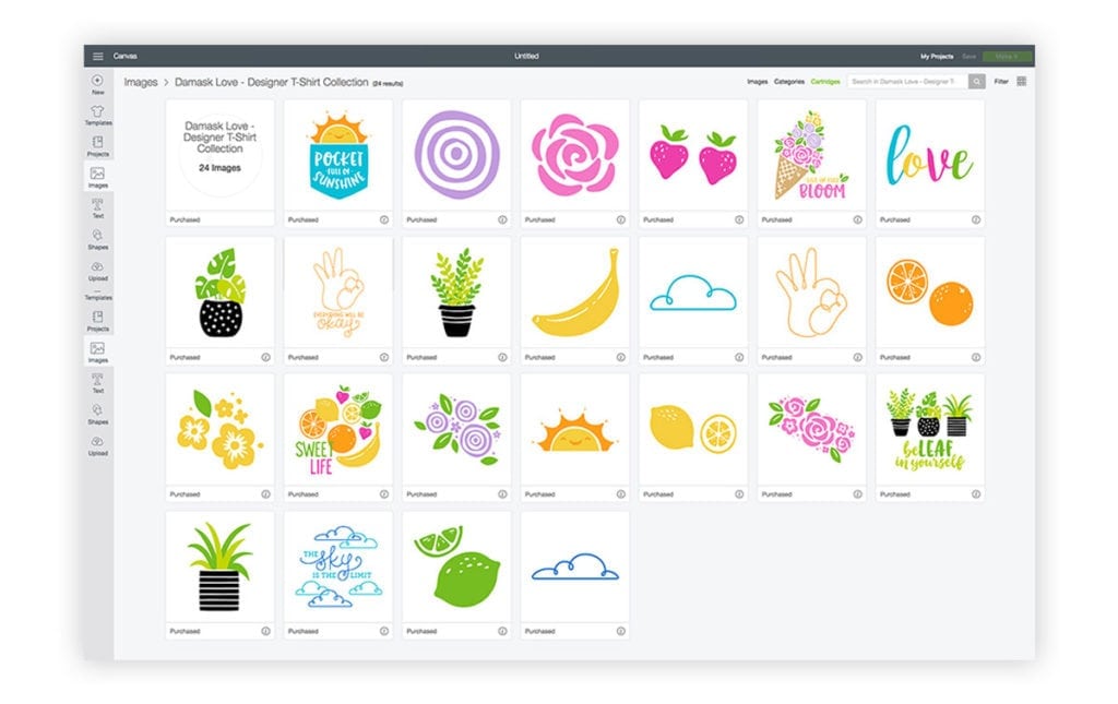 To celebrate the new EasyPress, you can hop over to Design Space and check out the Damask Love Tee Collection, filled with colorful and inspirational images, messages and words to transform your everyday tee. Take a look at what I mean: