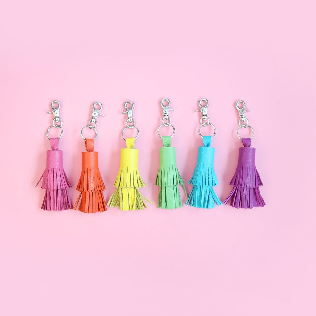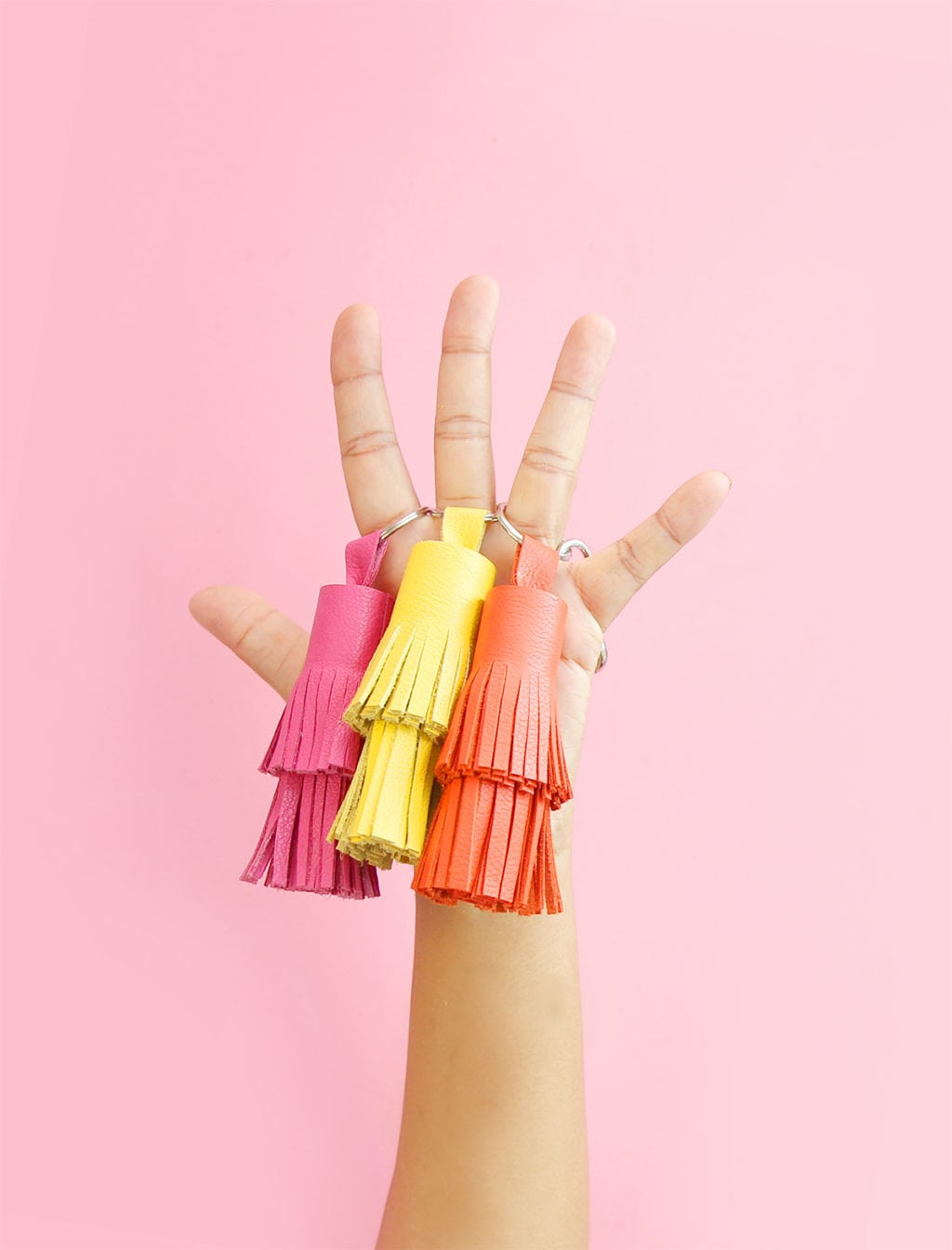 Ever made something with every intention of gifting it to a friend – then you sort of, maybe fell in love with it a little too hard and decided that you might not part with it? Decided that your friend probably doesn’t need it anyway? Decided that a Starbucks giftcard would do just fine? Well, yeah – that’s the current state of affairs with these tassel keychains. All six of them. I only have one set of keys – yet I have convinced myself that six leather tassel keychains are completely necessary. You can’t break up the set, right? Just agree with me. You shouldn’t argue with a crazy person.