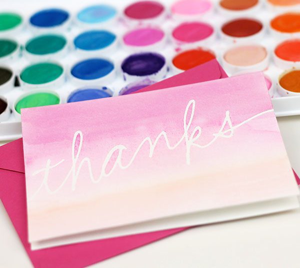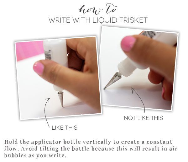 {1} Write out your sentiment with the liquid frisket applicator bottle onto watercolor paper. Allow the liquid to dry completely. Once it is dry, it will be transparent.