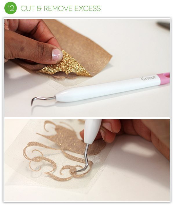 - Once the iron-on is cut, use the weeding tool to carefully peel back all the excess material. This particular design is very intricate, so this tool comes in very handy.