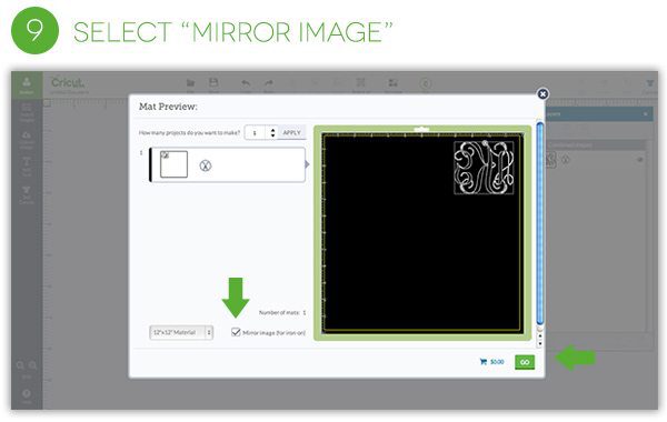 - Since you are making an iron-on, remember to click the “Mirror Image” checkbox on the center bottom of the screen!