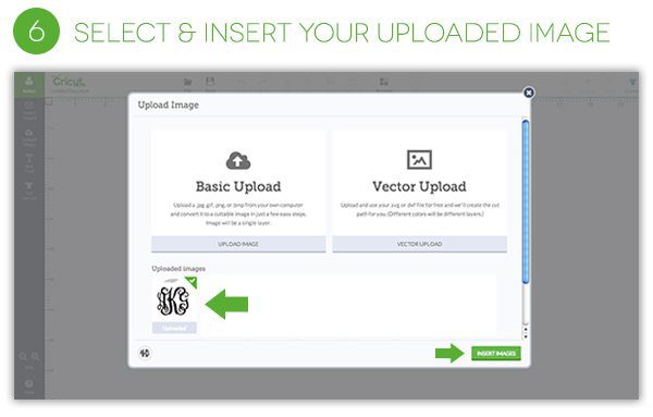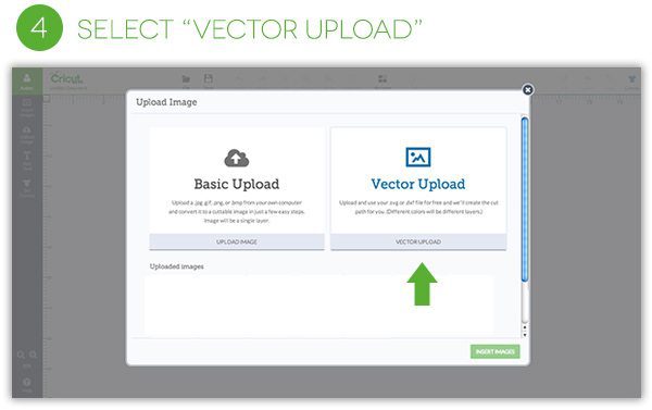 - For this monogram project, click “Vector Upload”