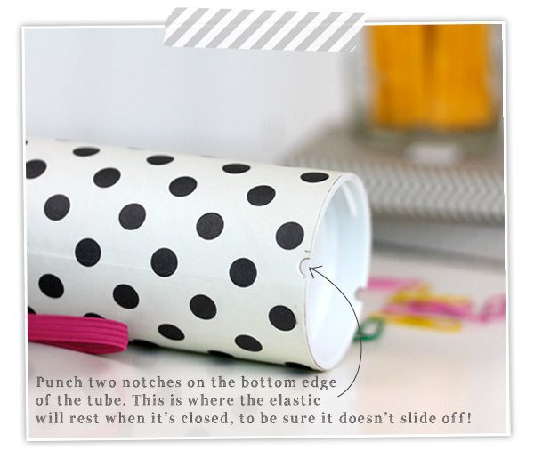{7} Use the hold punch again to place two notches in the bottom edge of the tube (see below)