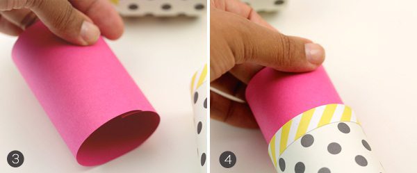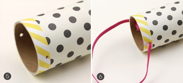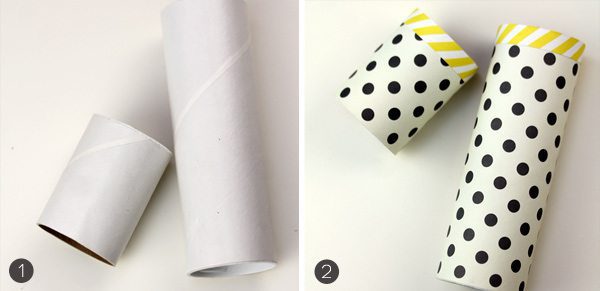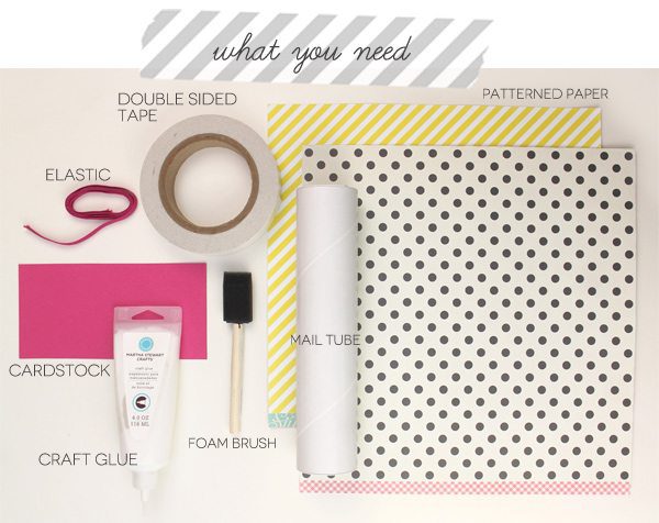 {2} Use double-sided tape and/or craft glue to adhere the patterned paper around the mail tube.