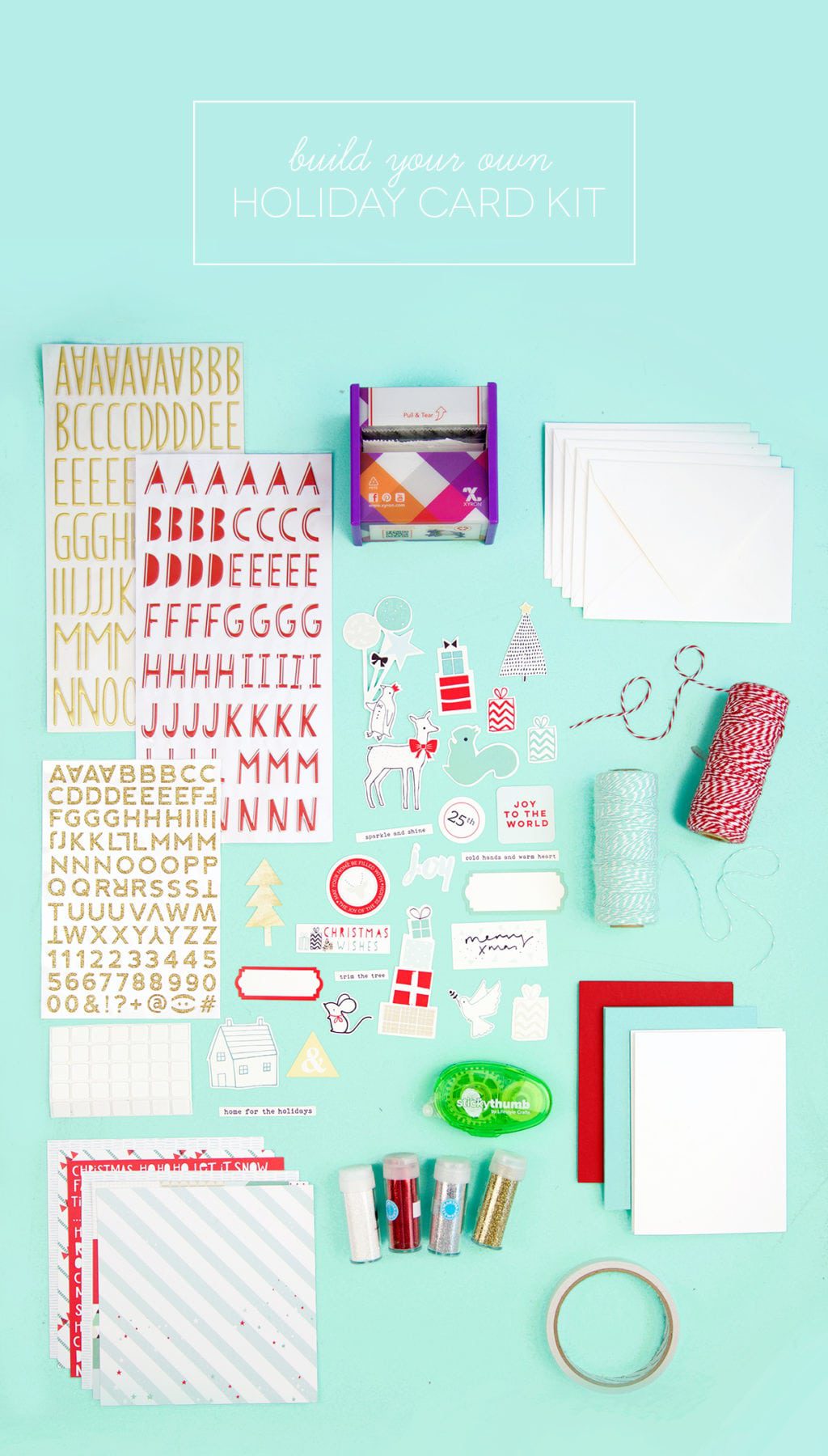 Now it’s your turn to build a card kit. It’s a ton of fun and really won’t break the bank. Keep scrolling for a complete, clickable list of everything you need to make a holiday card kit just like mine!