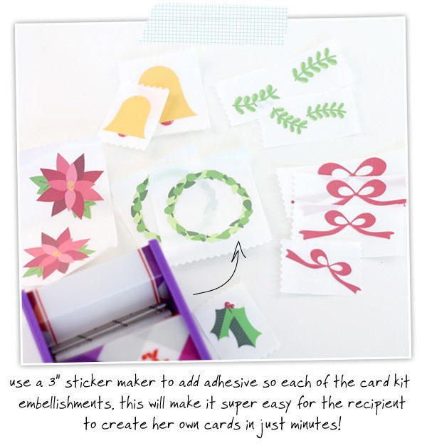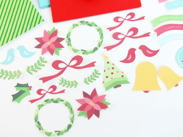 In the end, I was about to create four card kits in a little over an hour – which is a lot quick than I could have done it by hand! Love it! Come back tomorrow to see Part II of this post where I reveal the 16 different card designs you can create with this Merry & Bright Card Kit!