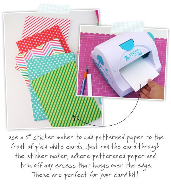 And for the sake of the card kit recipients, I wanted to package these up in a way that made each element simple and easy to use. That’s where my trusty Xyron sticker maker came into the equation. Y’all know how much I love that Xyron! Just like I did in THIS post, I used my large sticker maker to create quick cards for the kit. I then used my smaller Xyron to add adhesive to each of the embellishments and sentiments.
