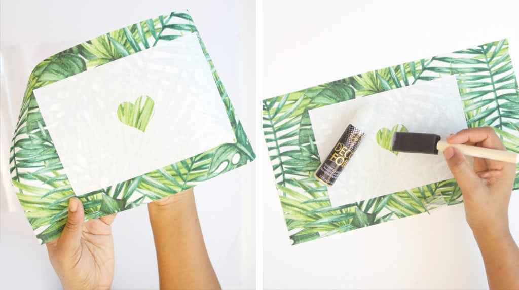 - Freezer paper with a cut out design in it – I just used a simple heart shape.