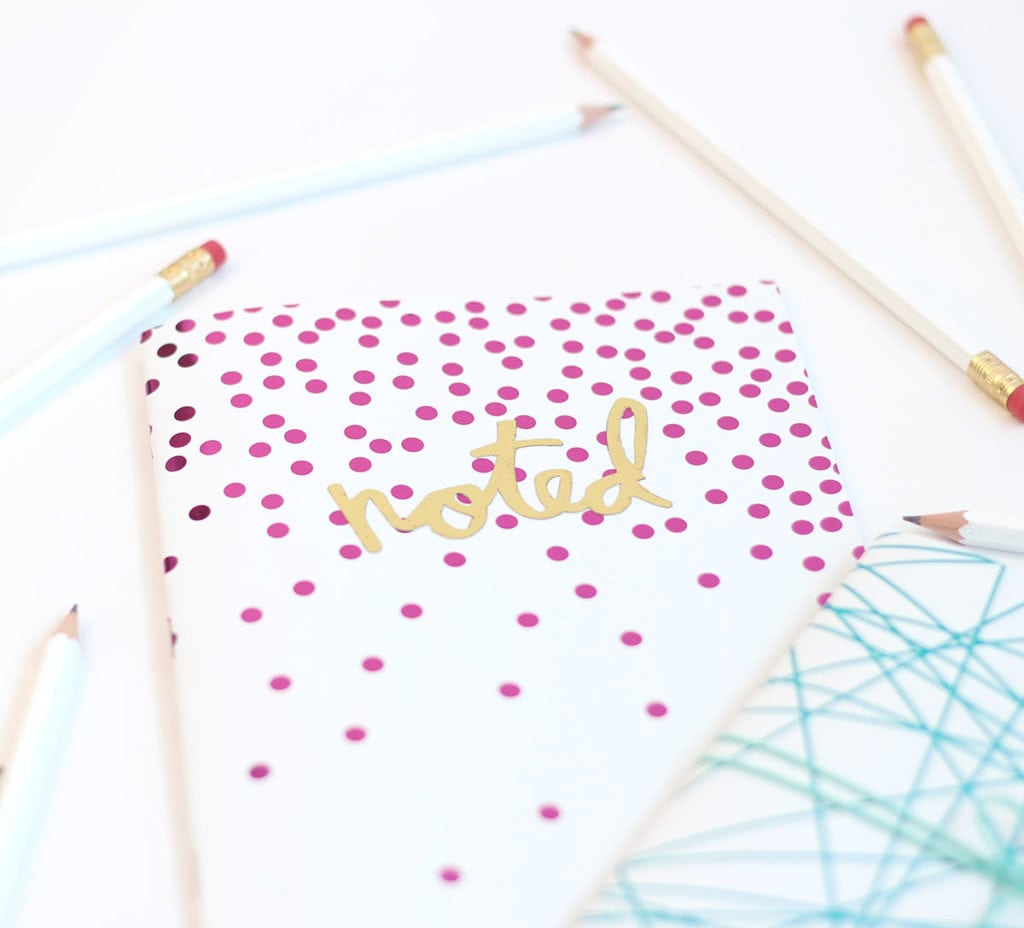 I go hard for awesome craft supplies. Like the way most people will murder each other over the latest Lilly Pulitzer for Target collection – I might cut you in defense of my most beloved DIY doodads. Like my Minc. You’ll have to pry it out of my cold dead hands. My cold, dead, chipped manicure, remnants of gold foil, bits of acrylic paint from my last project, hands. I’ve tackled foiling before – but the Minc makes it so much better. No kidding. If you don’t believe me – ask Andrew. He thinks this tool is the coolest…and he’s a tough critic. His only complaint? There should be more designs featuring rap lyrics. I’m serious. He said that. I’ll spare you the 2 Chainz and make some easy notebooks instead.