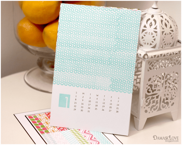 I decided to create a modern calendar that featured a bold stamped background image on each page.