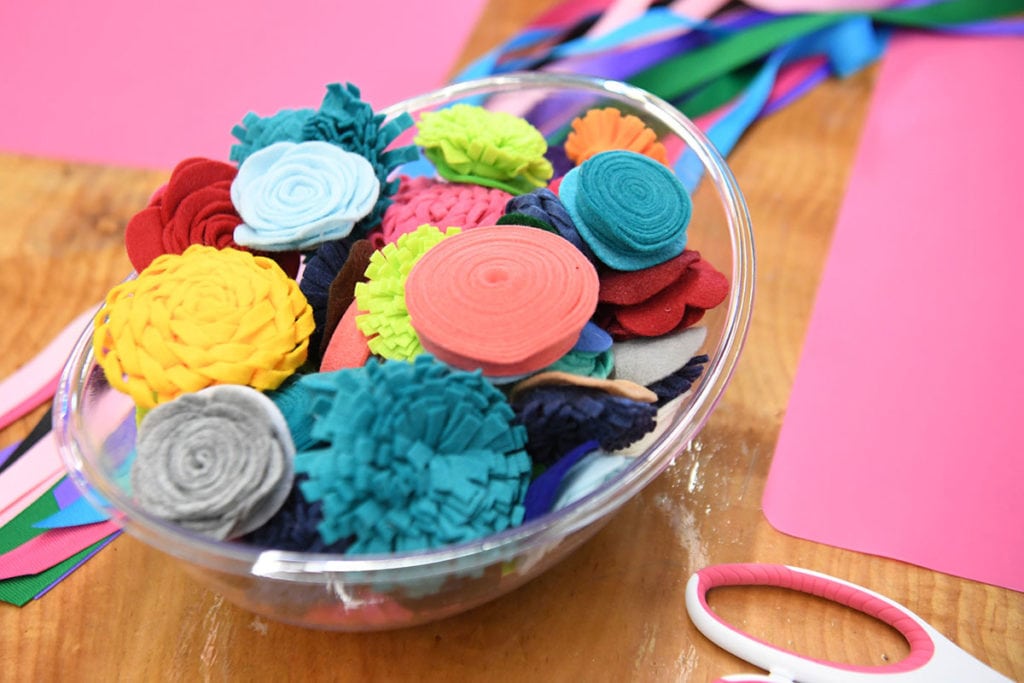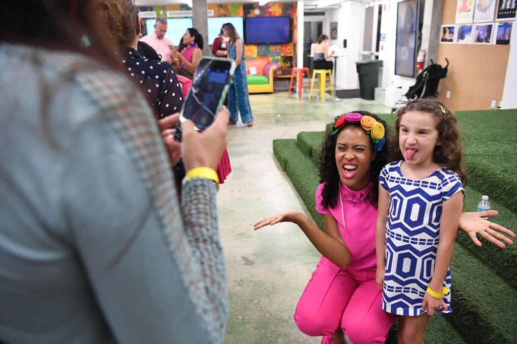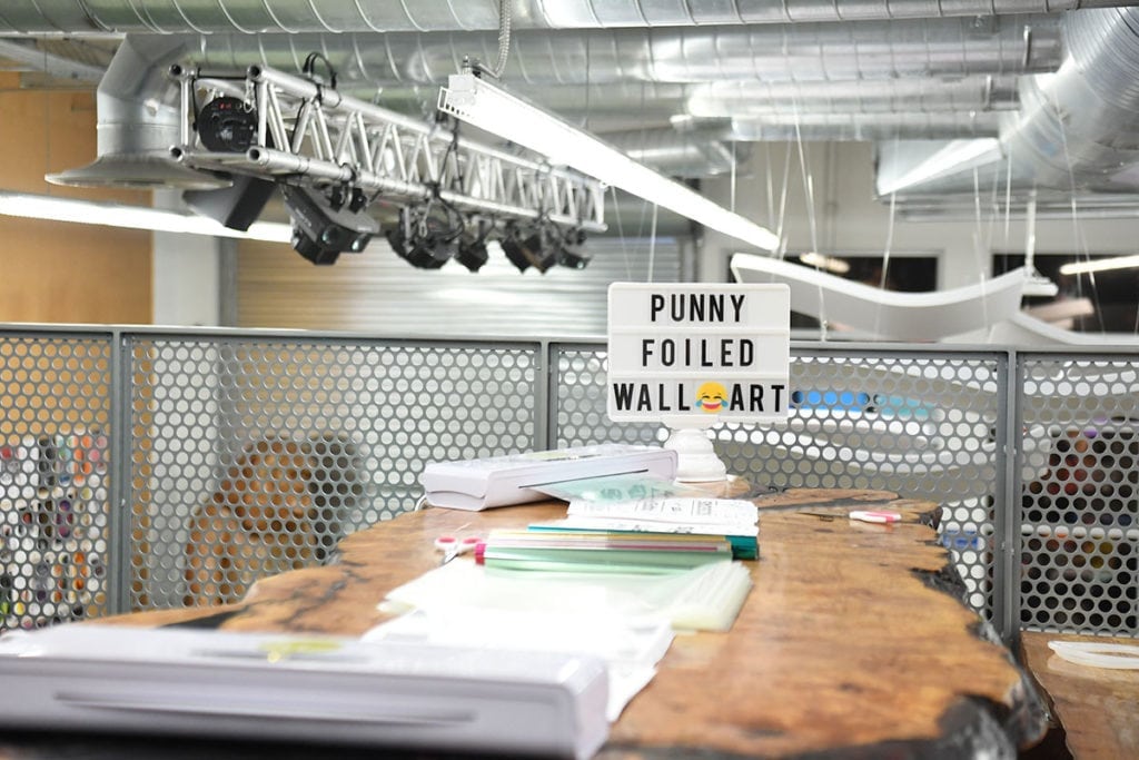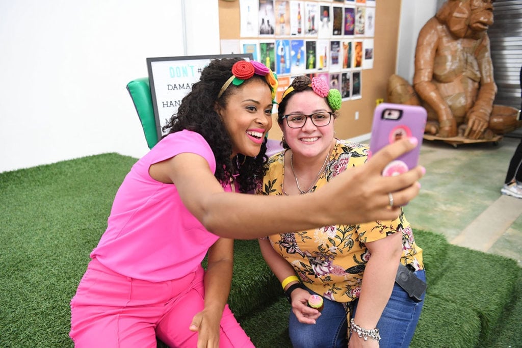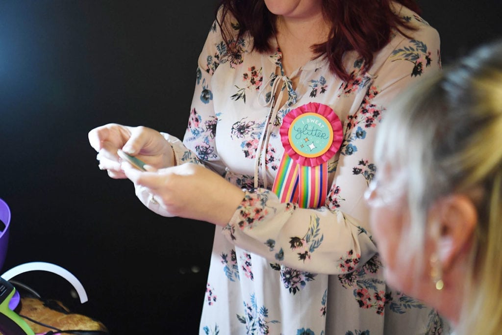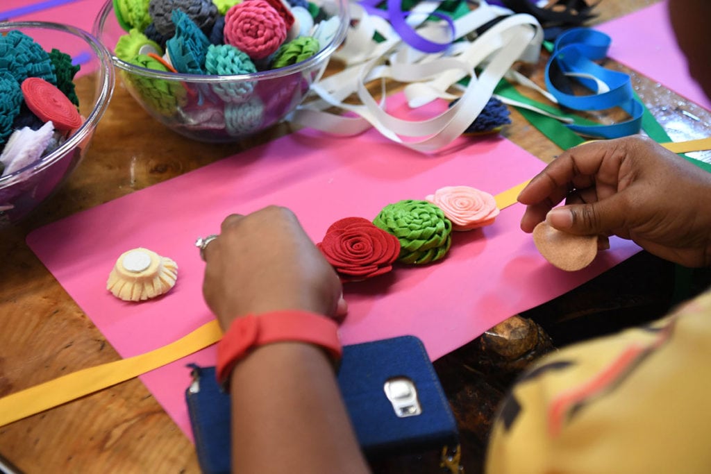 Now, rainbow photoshoops* were not the only thing to keep busy once the doors opened! Upstairs was a trio of maker stations featuring crafting supplies from..yep, you guessed it…JOANN! Guests moved from station to station and created their own felt floral crowns, crafty merit badges and foiled wall art.
