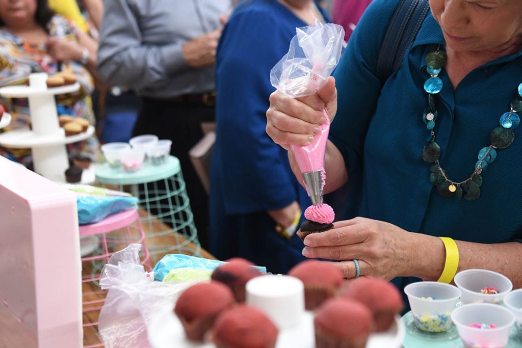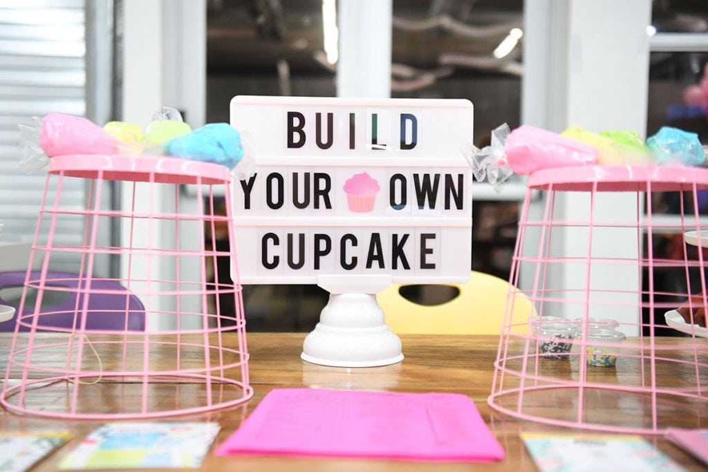 The rainbow theme continued with a “Build your Own Cupcake” station, where each person could pick a cupcake and customize it with sprinkles and frosting.